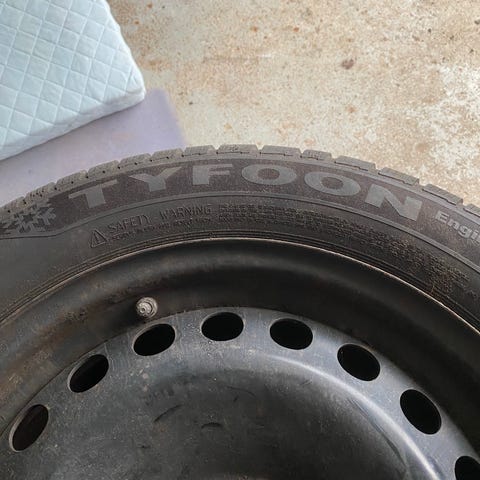 Vinterdæk, Tyfoon Eurosnow. Er ikke 100% sikker på centerhul diameter, men hjulet har siddet på en Nissan Note.