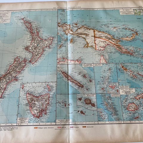 Stort skolekort over Stillehavsområde med danske navne. Kortet er super flot og måler 153x115 cm.