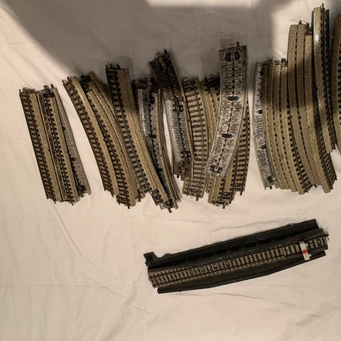 Marklin Sæt med M skinner og spor til modeltog. Indeholder lige og buede skinner samt sporskifter. Passer til modeljernbaneopbygning og udvidelse af eksisterende togbaner. Er vintage model med 50+ år på bagen, men virker fint. Se også mine andre annoncer