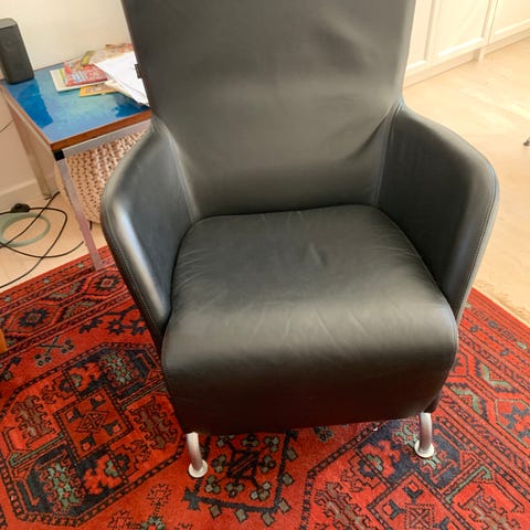 Et stk. Skalma læderlænestole af dansk kvalitet med rigtig god siddekomfort kan dreje. Den er i rigtig god stand har stået til pynt i stue 2 så brugt meget lidt. Ny pris 15.000 kr. sælges for kun 3.000 kr. >Tlf 40742594
