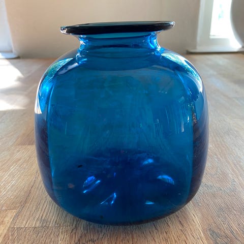 Meget meget lille og næsten usynligt afslag på vasens åbning - jeg i hvert fald ikke få det med på billede.