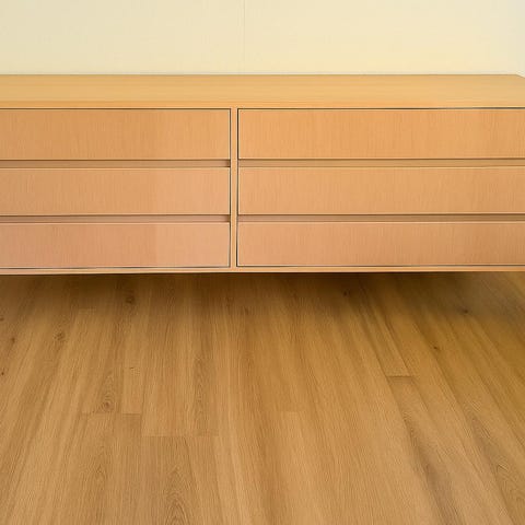 Væghængt skænk/vitrine med skydelåger og 2 skuffer