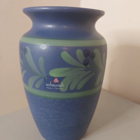 Vintage vase fra tyske SCHEURICH, 20 cm. Vasen er med en meget usædvanlig glasur og i rigtig fin stand. Pris kr 120 afhentet Kbh Ø. Sikker forsendelse kr 50