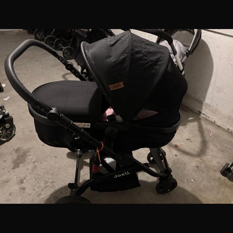 Clamaro 2i1 kombi-barnevogn med stor og stabil liggeskål og sæde samt masser af tilbehør som regnslag, luffer til hænder og ekstra overtræk. Kan foldes sammen. Perfekt som barnevogn til sommerhus eller altan. Læderrem til ophæng af stellet er erstattet med kabelbinder, fungerer fint. Det ene hjul mister lidt luft og skal nok have en ny slange. Farve: brun
