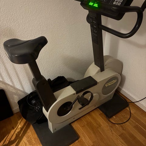 Ældre Technogym bike exc 700 med mulighed for tv tilslutning på skærmen. Cyklen er meget stabil.