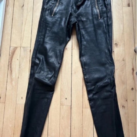 Flotte skindbukser str. Ca. 38 (taljemål 76 cm) af mærket Solitaire. Fast linning og 1 forlomme.