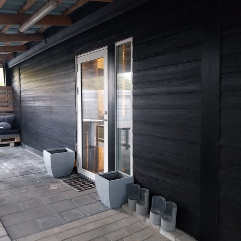 Udendørs skur med fibercement beklædningsbrædder