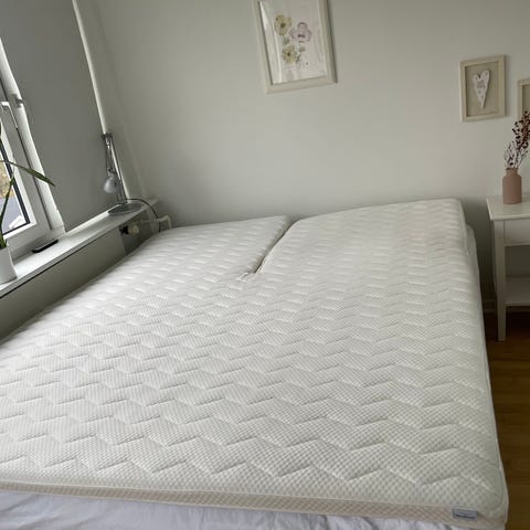 Begge madrasser samt topmadras sælges samlet til 1.500kr. (Ramme og ben samt gavl medfølger ikke)