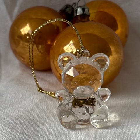 Gammelt glas julepynt - vintage glas julekugle formet som en utrolig fin og kær bamse. Med ophæng til at hænge på juletræet.