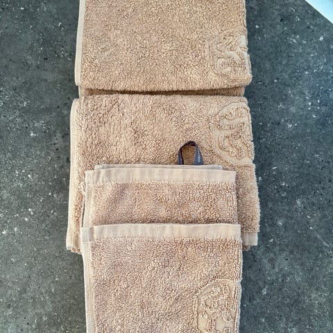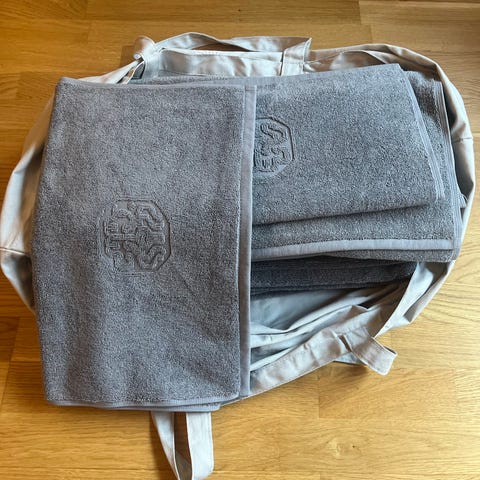 9 lækre Georg Jensen Damask håndklæder i hvid. De er aldrig brugt og kommer med Georg Jensen mulepose. 4 stk. Badehåndklæder 70x140 2 stk. Håndklæder 50x100 2 stk. Gæstehåndklæder 40x70 1 stk. Bademåtte 50x70 Ny pris: 2000kr