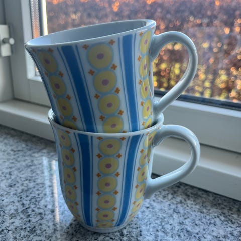 Kruset er af porcelæn, 35 cl og kan tåle at komme i opvaskemaskinen.