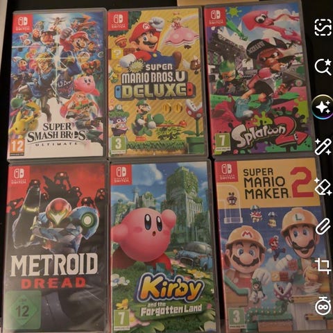 Nintendo Switch Super Smash Bros Ultimate spil. Spillet er til Nintendo Switch konsollen og indeholder en række karakterer fra forskellige spiluniverser. Spillet er klassificeret til aldersgruppen 12 år og op.