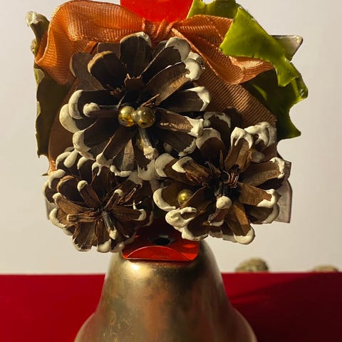 Den er i kobber og jern og har en fantastisk lyd. Vil tro den er fra 60”erne.