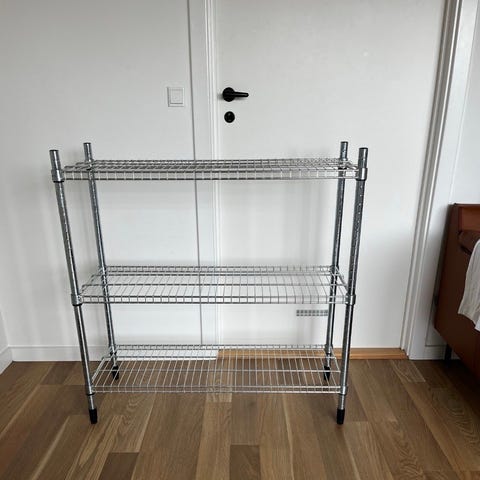 Omar reol i stål - kan sættes oven på hinanden så den bliver 182 cm høj.
