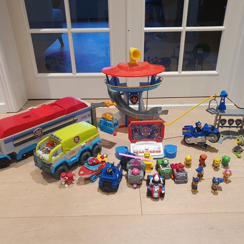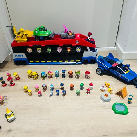 Flere større biler og mange figurer. Visse dele er lidt mere slidt end andre, men generelt i god stand