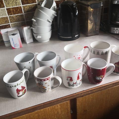 4 Hvide jule krus fra det gamle apotek.
