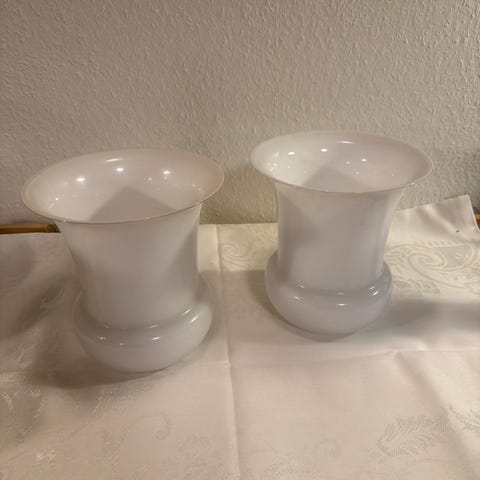 Dette er en Holmegaard Trumpet vase i opalglas, formgivet af Michael Bang