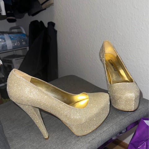 Røde højhælede guld sko