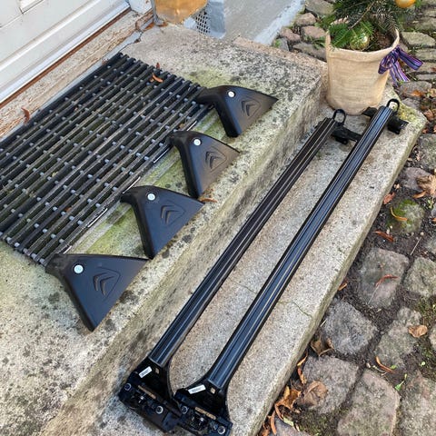 Originale tagbøjler til Citröen C3 årgang 2019 brugt på ca. 3 ture. Vi solgte bilen for 4 år siden, men har stadig tagbøjlerne til salg (kan ses her: https://gladcitroen.dk/shop/tagboejler-c3/).