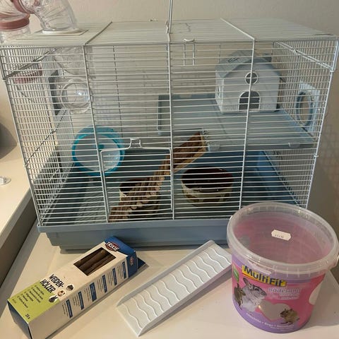 Bur til små dyr ( dværghamster eller mus) med tilbehør