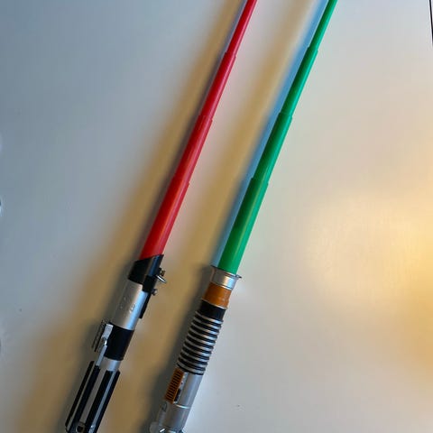 Darth Vaders lyssværd. Bevægelsesfølsom med lyd og lys så det siger de rigtige lyde når man bevæger det og blinker når man rammer noget. Virker perfekt. Har lige sat nye batterier i. Kan afhentes i Smørum eller sendes. Men det er langt og dyrt at sende.