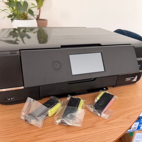 Professionel A3 fotoprinter. Brugt utroligt lidt, udskiftes kun fordi min nye Mac ikke understøtter driver til den. Vil fungere 100% på alle nye PCér. Sælges ncl. 17 helt nye blækpatroner til en værdi af kr. 3.808,- Virkelig en super fin printer, som laver fotografisk art-kvalitet. Pigmenteret bæk med + 75 års garanti for laver, også i direkte sollys. Kan ses i Maarslet v. Aarhus. Sendes gerne via GLS, køber betaler porto.