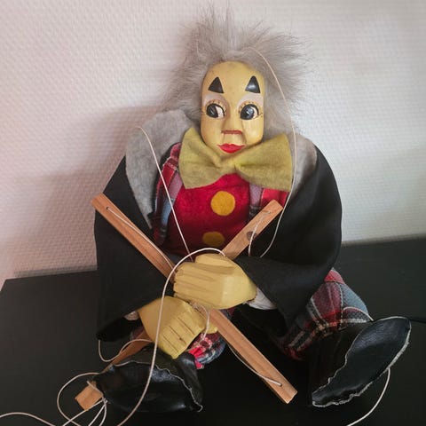 Dette er et tysk blikoptrækslegetøj af en klovn med en hund.