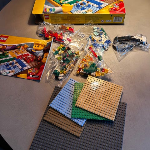 LEGO City byggesæt med forskellige byggeplader og mange små byggedele i forskellige farver. Sættet indeholder flere poser med klodser og en vejledning til samling. Velegnet til kreativ leg og konstruktion.