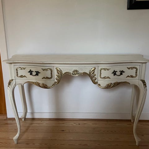 1 børge mogensen sminkekommode, ingen ben og skal tørre efter den har stået fugtigt. Skufferne skal høvles/slibes i siderne.