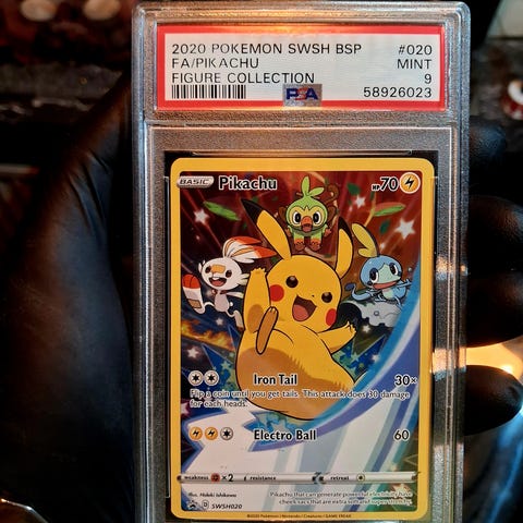 2020 Sword & Shield Pikachu Figure Collection Promo, i en PSA Mint 9. Enhver der har omgang med de boxe ved hvor svær den er at grade, da flertallet er skadet pga pakkemetoden og måden den bliver hægtet fast i blisteren fra fabrikken:) Prisen er fast indtil jeg selv justere op eller ned på den:) Jeg sender helst ud med GLS, når det gælder PSA slabs, da man kan føle sig mest tryg der efter min mening og ellers må man betale sit gebyr til DBA ved aftale med mig.. Mvh Dennis