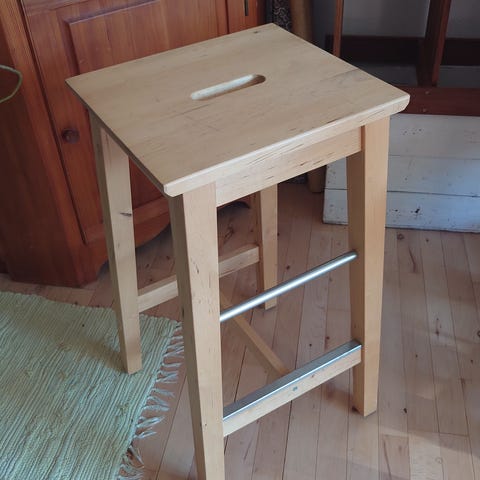Siddepladen har brugsspor som evt kan afhjælpes med en slibning. Sædehøjden er 72 cm.