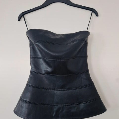 Sælger denne super fede figursyede bandeau-top i lækkert, coated materiale (PU/imiteret læder).