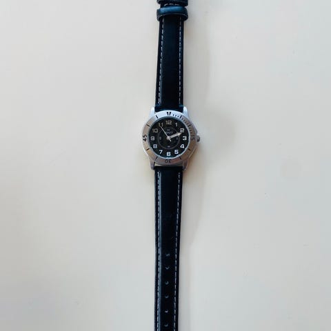 Breitling unisex ur med rød rem og hvid urskive. Uret leveres med original æske og dokumentation. Remmen har sort tekst med 'SPORT WATCH' skrevet på.
