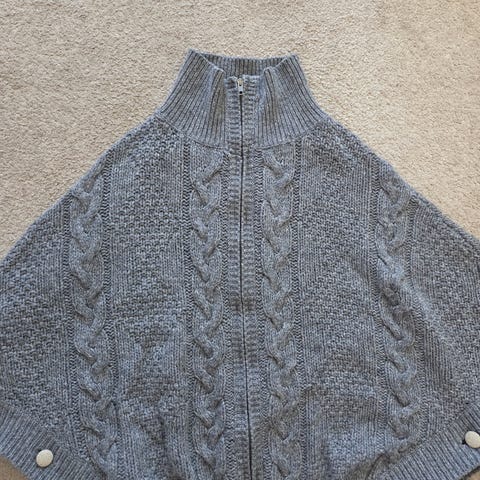 Lækker strik poncho af uld med masser af forskellige farver. One Size