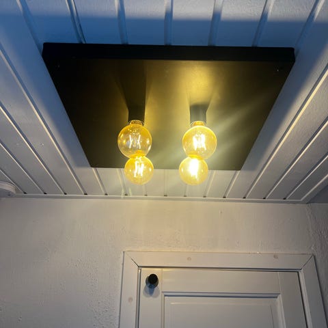 Fed Loftlampe i sort stål med sort stofledning, Bakelitfatninger og 6 stk. led decopærer, kan leveres i Silkeborg, Randers og Viborg efter aftale, sender gerne