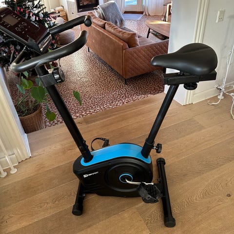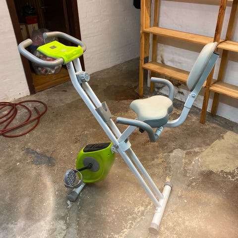 Kettler Motionscykel i beige farve. Stationær cykel til indendørs brug med digitalt display til at følge træningsdata.