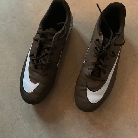 Nike fodboldstøvler i størrelse 38 med grøn og sort farve. Støvlerne er designet til fodbold og har knopper under sålen for bedre greb på banen.