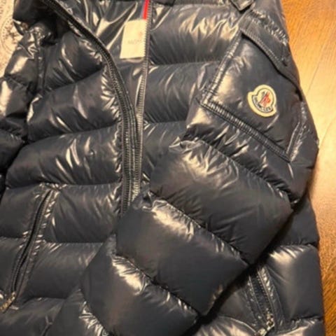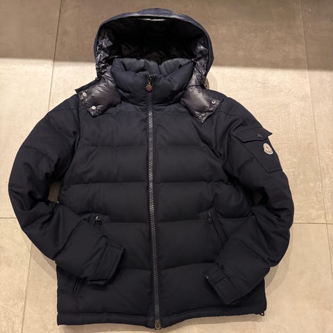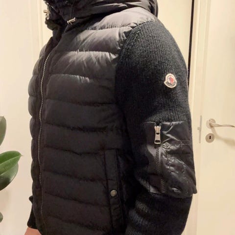 Moncler Jakke i størrelse 6 ( XXL / 3XL, ) farve grå/grøn/ sand, fremstillet af dun. Jakken er designet til mænd og egner sig til udendørs brug.