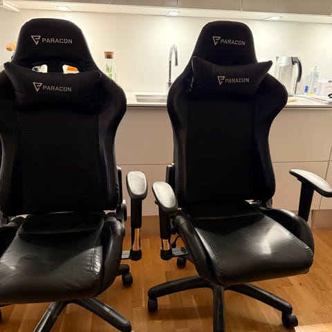 Hej jeg sælger min Paracon gamer stol i blå og sort. Den er brugt i nogle år, men bliver ikke brugt mere. Fin stand, har dog brugsspor i læderet, men fungere helt udemærket.
