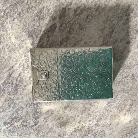 Det er et cigarette itue af sterling sølv der vejer omkring de 90 gram