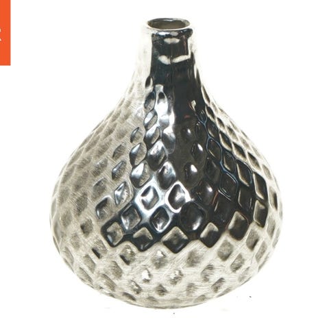 Urban Trends Collection Ceramic Eliptical Vase er en keramisk vase med en eliptisk (oval) form og en "hobnail" (nopret) overflade, der er afsluttet med poleret krom i sølvfarve.