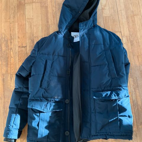 Dejlig lun vinterjakke med hætte fra Zara. Str M i herrestørrelse.