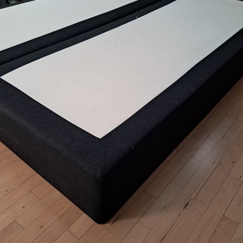 To fine boxmadrasser, som tilsammen måler 160x200. De er nogle år gamle, men har ikke store pletter eller lign. Har altid haft topmadras på. De er faste i hårdheden. Der er ben på lige nu, men de kan nemt skrues af. De er 44 cm høje med ben og 28 cm. uden.
