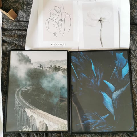 Plakater fra Desenio og tilhørende rammer fra IKEA🩷 det har kun hængt oppe i 1 år og har ikke været udsat for sollys.