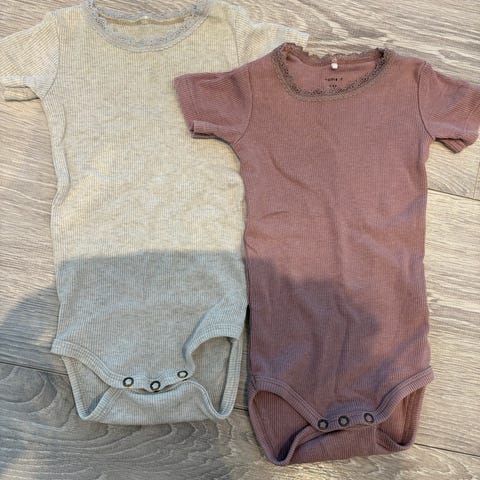 2 langærmet sæt fra Name it inkl. body og bukser i str 86, bomuld, fremstår som nye.