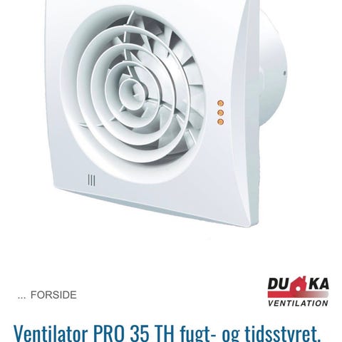 Duka DTL 100 T ventilator med rund luftkanaltilslutning. Produktet er fremstillet i hvid plast og er designet til ventilation i bolig- og erhvervsmiljøer. Ventilatoren har en kompakt konstruktion og er udstyret med monteringsbeslag for nem installation, kan monteres både vandret og lodret, brug vejledning medfølger, ventilatoren er lydløs.