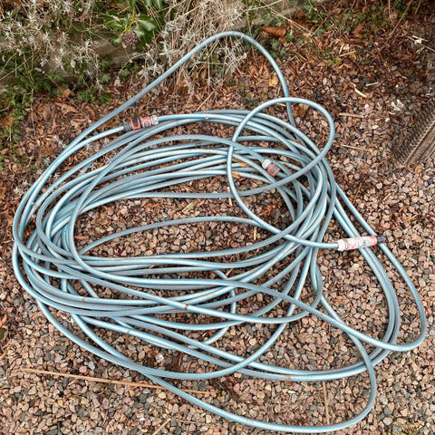 Flexvandslange, der udvider sig, når den fyldes med vand.