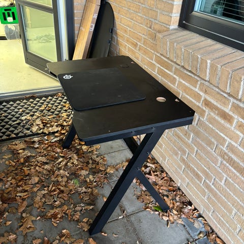 Arozzi gamingbord med integreret musemåtte. Bordet har en stor overflade med sort og rød farve, designet til gamingbrug. Musemåtten er fastgjort til bordpladen, hvilket giver en jævn og stabil spiloplevelse. Bordets stel er sort og robust.
