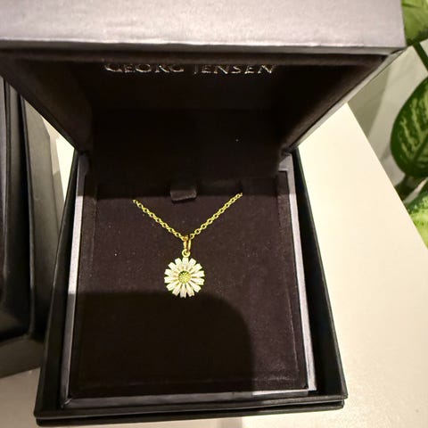 Daisy halskæde med 45cm kæde og Daisy på 18mm. Har også den på 11mm til salg samt meget andet.