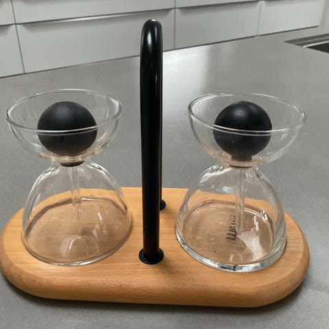 Olie-eddike sæt, Sødt olie-eddike sæt. Fin stand. Har aldrig været brugt. Højde: 19cm, bredde i bunden: 6cm.
